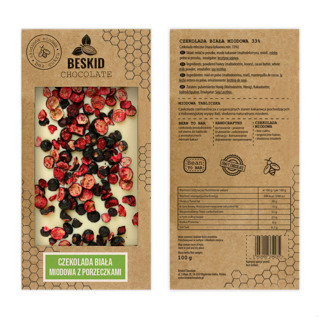 Czekolada biała miodowa z porzeczkami 33%