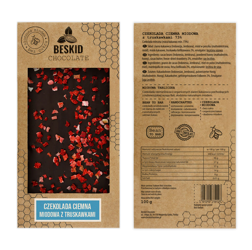 Czekolada ciemna miodowa z truskawkami 73%