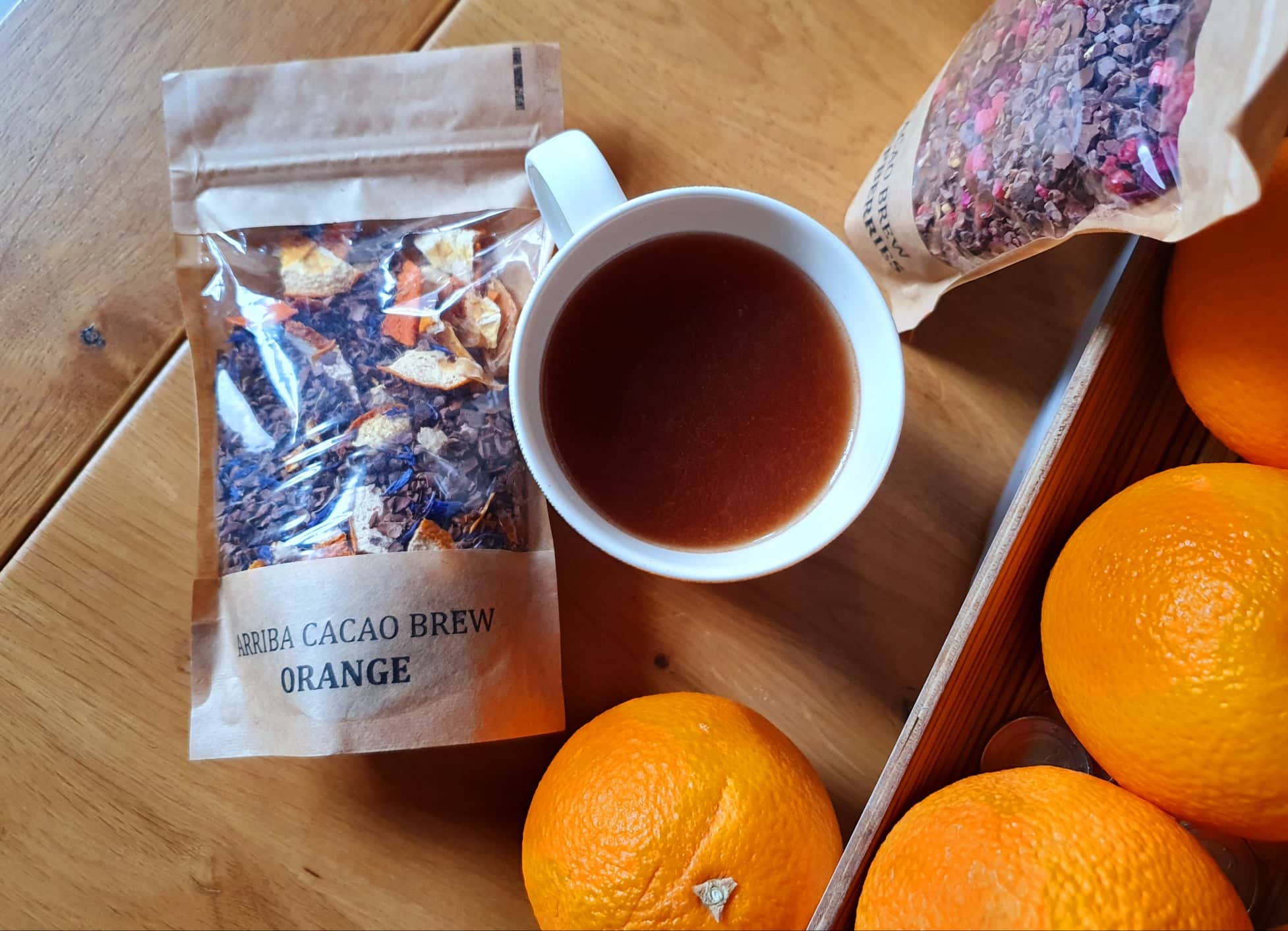 - Arriba Cacao Brew Orange z pomarańczami i bławatkiem