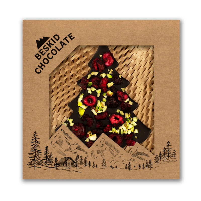 Choinka z czekolady ciemnej z wiśnią i pistacjami 100g