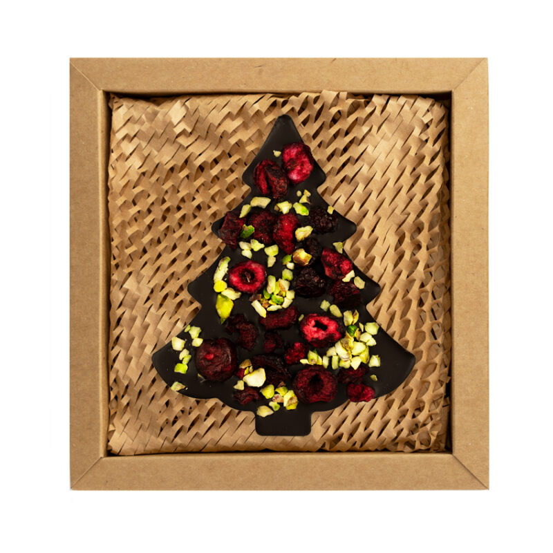 Choinka z czekolady ciemnej z wiśniami i pistacjami 100g
