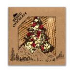 Czekolada ciemna w formie choinki zapakowana w eleganckie pudełko z okienkiem.