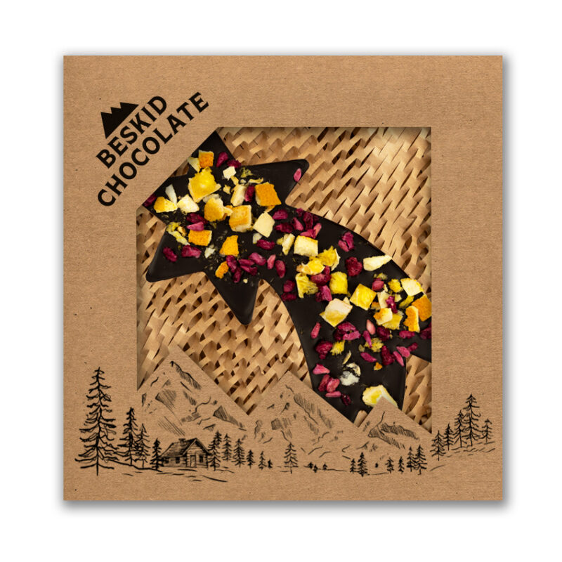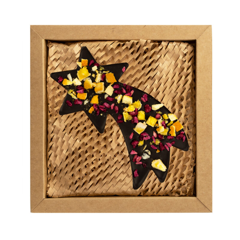 Gwiazda betlejemska z czekolady ciemnej z granatem i pomarańczą 100g