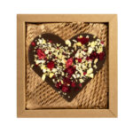 Czekolada ciemna w kształcie gwiazdy betlejemskiej zapakowana w eleganckie pudełko w stylu kraft wypełnione ekosiankiem.