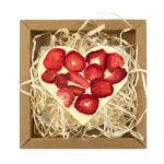 Serce z czekolady ciemnej z dodatkiem wiśni liofilizowanej oraz prażonej pistacji stanowi wspaniałą przekąskę. Idealne uzupełnienie popołudniowej kawy.