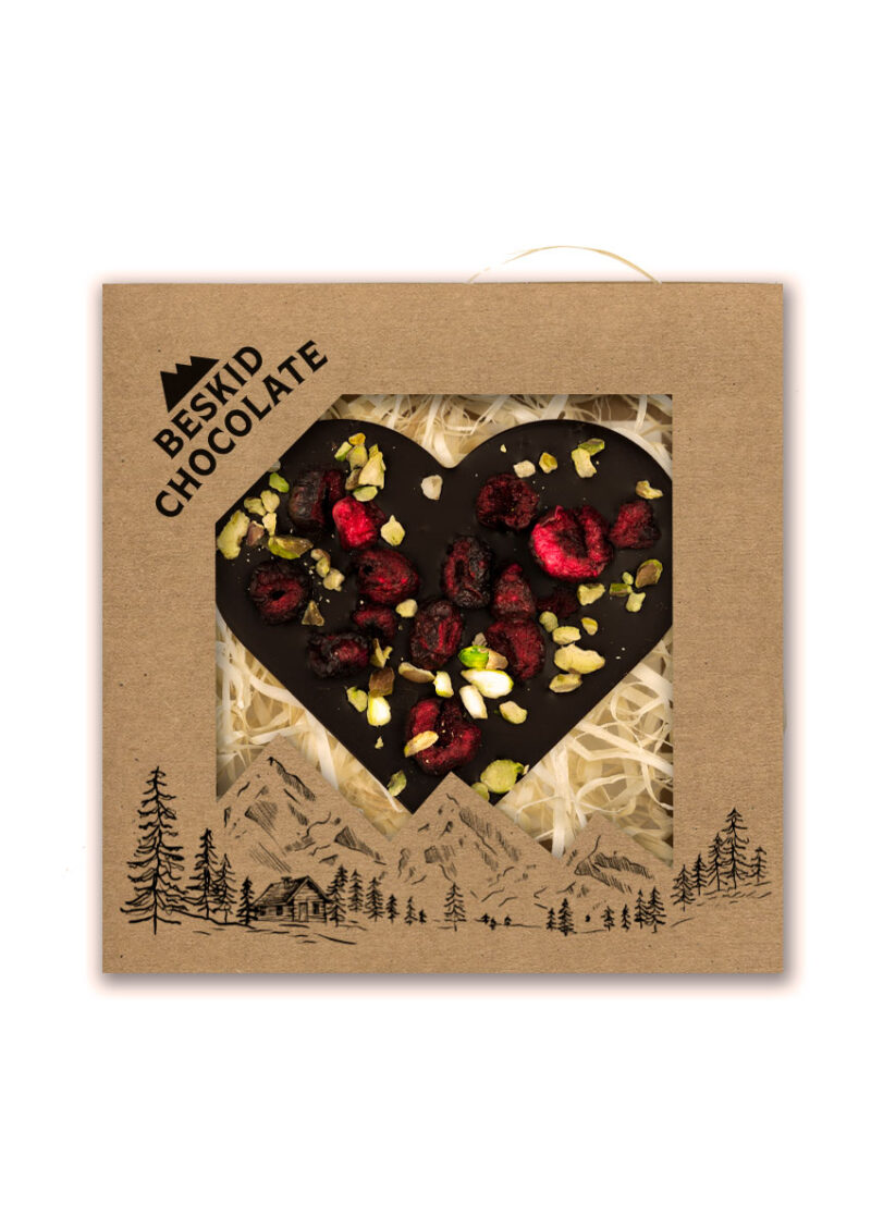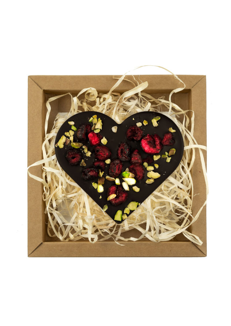 Serce z czekolady ciemnej z wiśnią i pistacjami 100g