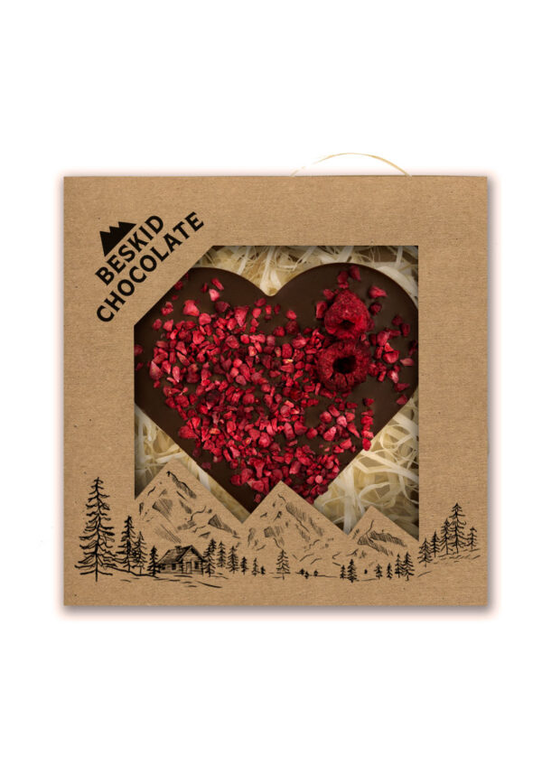 Serce z czekolady mlecznej z malinami 100g