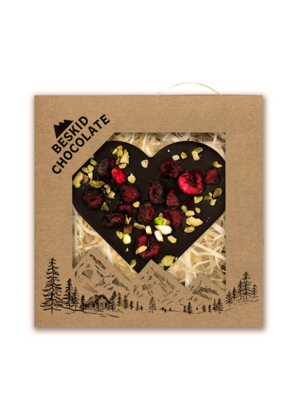 Serce z czekolady ciemnej z wiśnią i pistacjami 100g